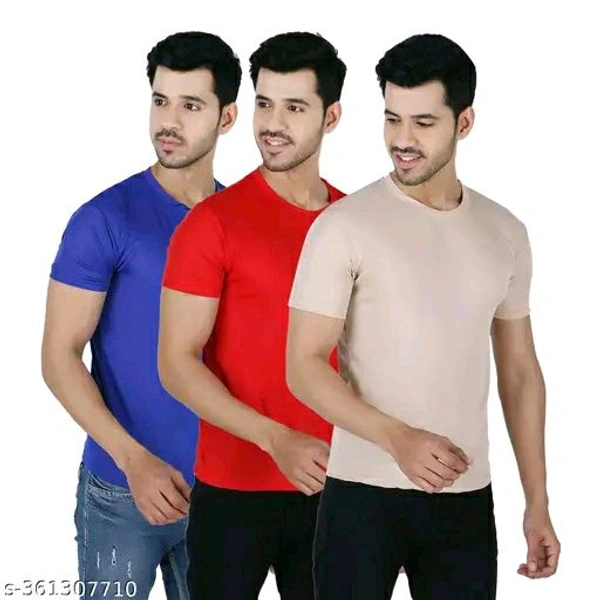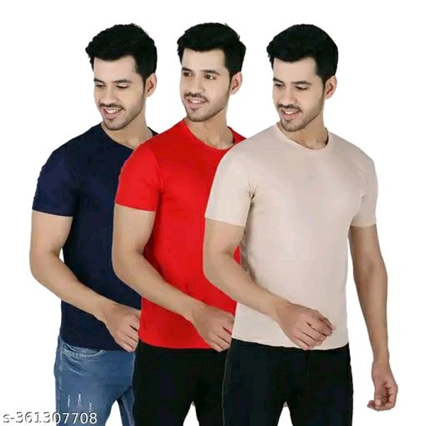 Catalog Name:*Pretty Partywear Men Tshirts*Fabric: Cotton Blend / PolyesterSleeve Length: Short SleevesPattern: SolidNet Quantity (N): 3Sizes:S (Chest Size: 36 in, Length Size: 26 in) M (Chest Size: 38 in, Length Size: 27 in) L (Chest Size: 40 in, Length Size: 28 in) XL (Chest Size: 42 in, Length Size: 29 in) XXL (Chest Size: 44 in, Length Size: 30 in) Dispatch: 1 Day*Proof of Safe