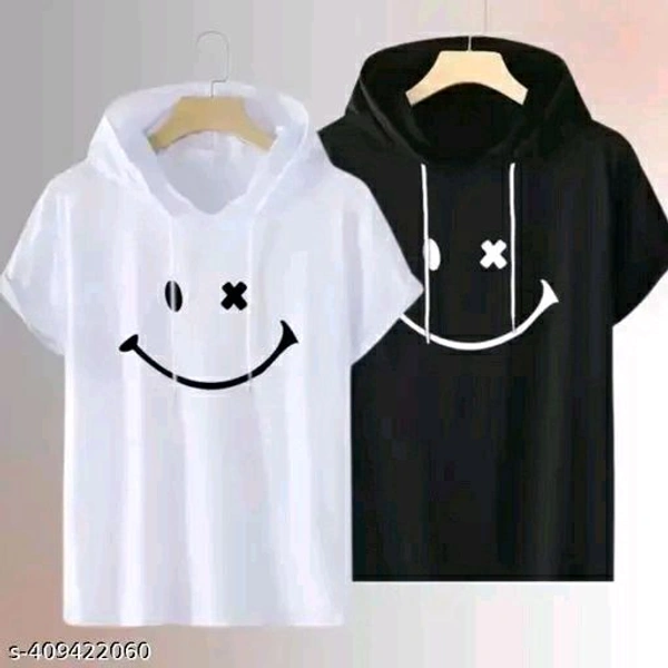 Santa fashion Men Printed Hooded Neck Polester black and white T-ShirtName: Santa fashion Men Printed Hooded Neck Polester black and white T-ShirtFabric: PolyesterSleeve Length: Short SleevesPattern: SolidNet Quantity (N): 2Sizes:S (Chest Size: 36 in, Length Size: 27 in) M (Chest Size: 38 in, Length Size: 28 in) L (Chest Size: 40 in, Length Size: 29 in) XL (Chest Size: 42 in, Len